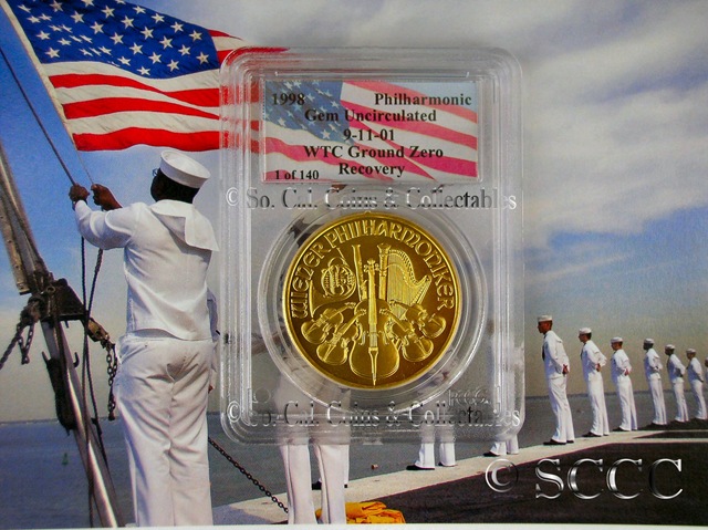 Just in time for the 9th Anniversary of the 911 devastating attack on the World Trade Center in New York, comes the coin up for sale, that has been eluded us all for so long. The 1 oz 1998 1 oz Philharmonic 1 of 140, I wish it was not out of my price range but it is. I would love to have that coin for my collection as it is truly the center piece of any WTC collection, but its just to much money for me. I would trade this website for that coin that is how much I want it. But I think I will have to wait for a better time to go after a jewel like this.