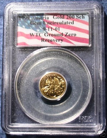 1999 911 AUSTRIA GOLD SCHILLING WTC GROUND ZERO RECOVERY PCGS GEM $369.95 Time Remaining: 28d 18h 40m Buy It Now for only: $369.95 Buy It Now |