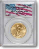 2001 $25 Gold Eagle found at the vault of the world trade center and graded by PCGS or Collectors Universe. This coin was part of a series that is 1 of 269. Sold at auction for $1,955.00 back in May 2007