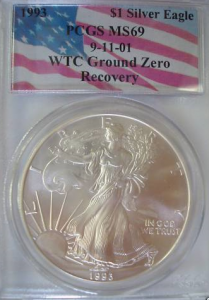 1991 American Silver Eagle PCGS MS69 9 11 01 WTC Ground Zero Recovery $225.00 Time Remaining: 8d 15h 13m Buy It Now for only: $225.00 Buy It Now |